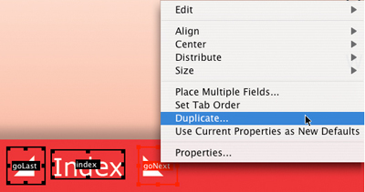 9. Duplicate the buttons. Select both buttons using the Select Object tool and open a context menu. From the menu commands, choose Duplicate as shown in Figure 2.